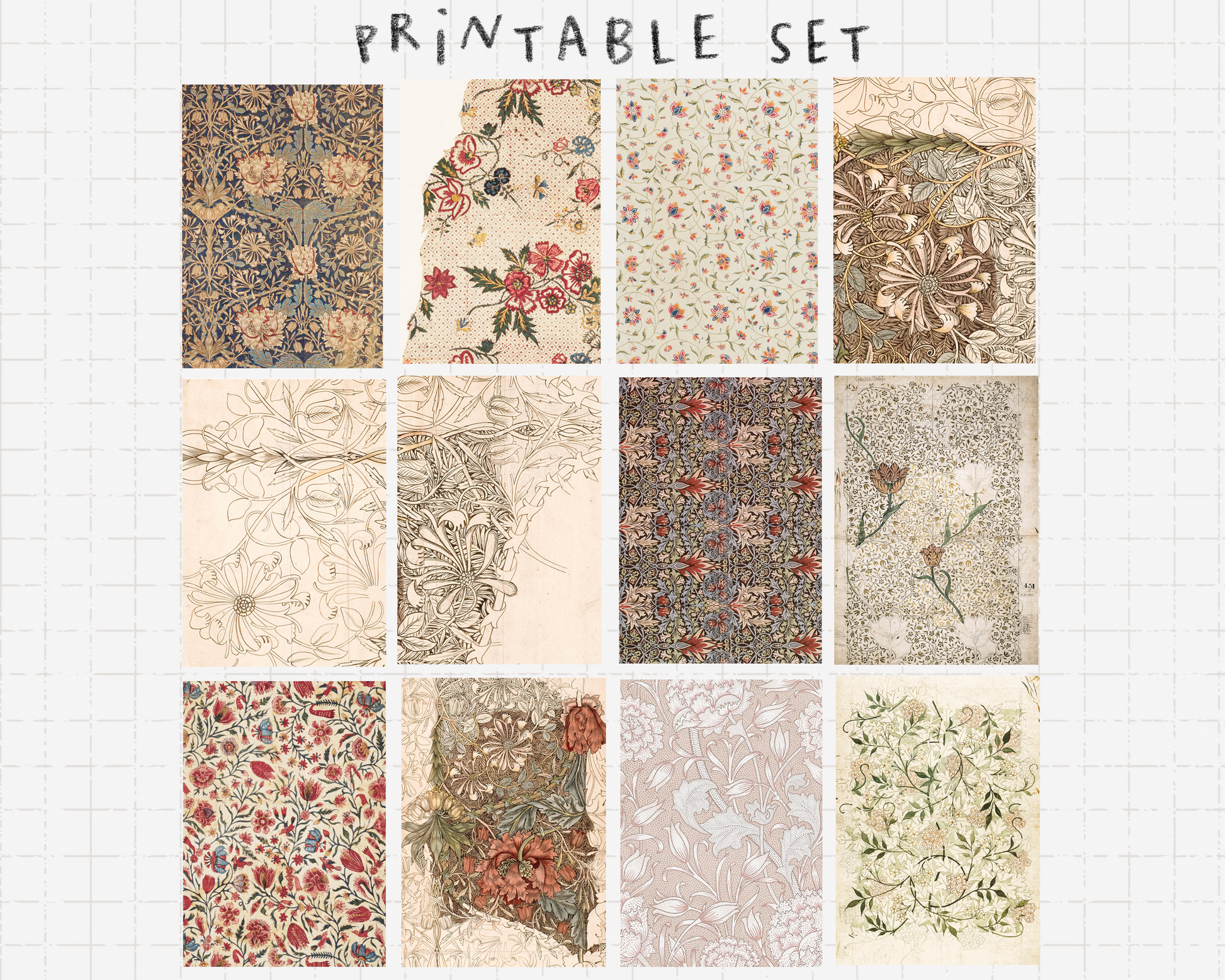 Lovely set of 12 vintage pattern. Can be used for journaling, junk journal, crafts...